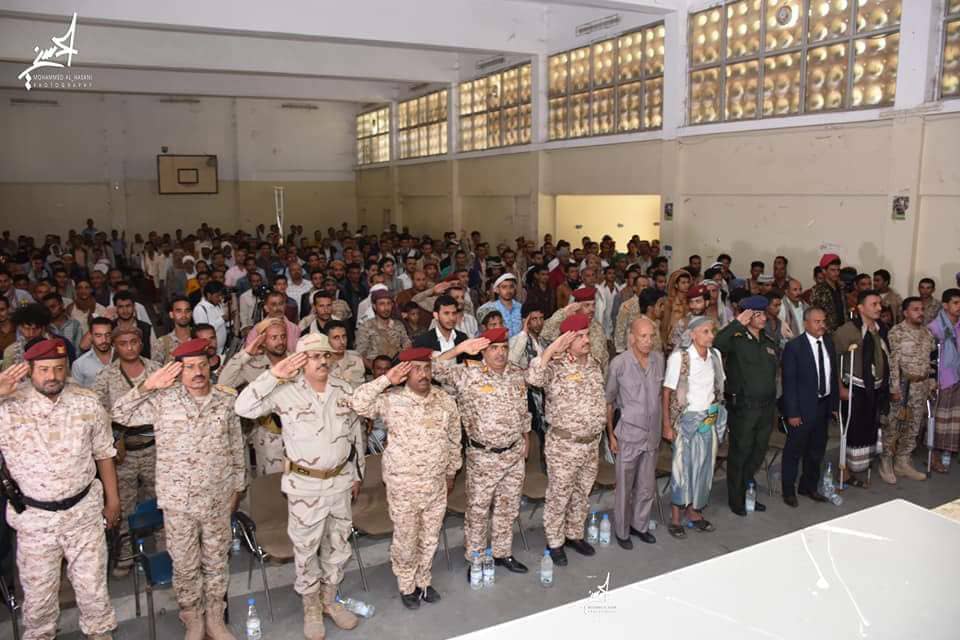 حيث حضر الحفل الدكتور عبدالقوي المخلافي وكيل اول محافظة تعز والعميد عبدالكريم الصبري وكيل المحافظة لشؤون الامن والدفاع وقائد المحور اللواء الركن خالد فاضل وعدد من القيادات العسكرية والأمنية و ممثلي الاحزاب والتنظيمات السياسية المحافظة وعدد غفير من المواطنين.