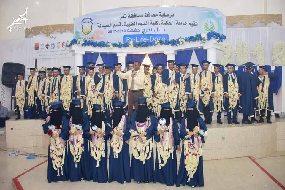 احتفلت جامعة الحكمة كلية العلوم الطبية قسم الصيدلة بمناسبة تخرج دفعة جديدة وفي الحفل الذى حضره اولياء امور الخريجيين والسلطة المحلية تخلله العديد من الفقرات المعبرة علي النجاح وطلب العلم والمثابرة .