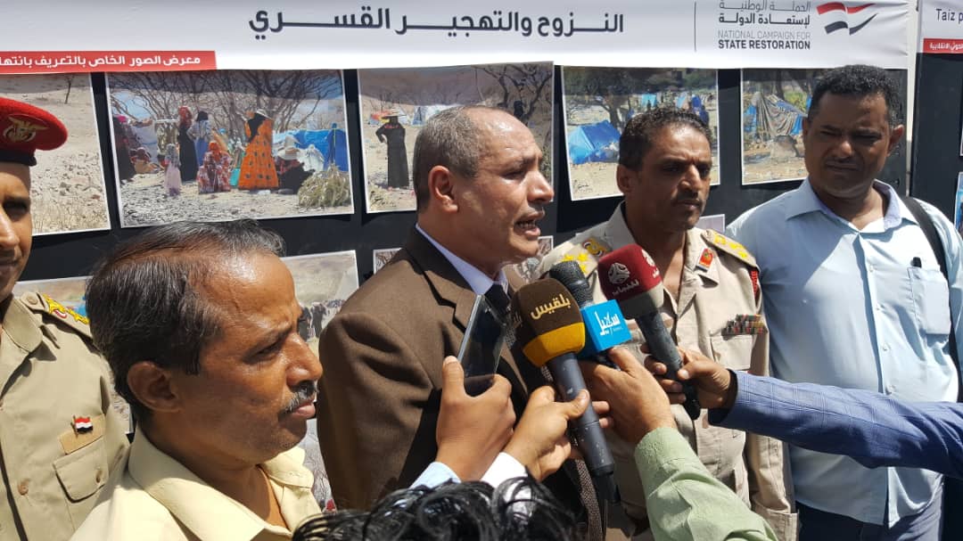 المعرض يأتي في إطار فعاليات الحملة الوطنية لاستعادة الدولة ، بمناسبة مرور خمسة أعوام على انقلاب مليشيا الحوثي .