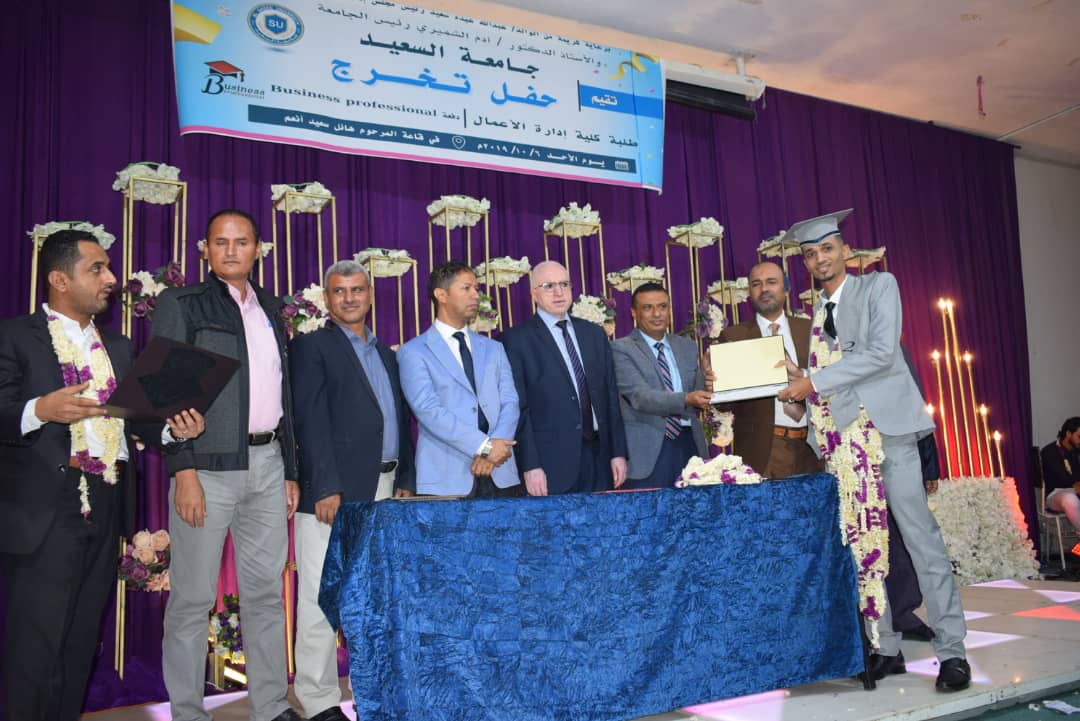 أقيم اليوم وعلى قاعة المرحوم الحاج / هائل سعيد انعم بجامعة السعيد حفل تخرج كلية إدارة الأعمال دفعة ( محترفي الأعمال ) من أقسام الكلية الخمسة ( ادارة الاعمال – المحاسبة – العلوم المالية والمصرفية – التسويق – والدفعة الاولى من قسم ادارة الأعمال الدولية ) .