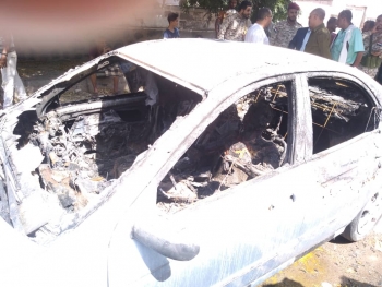 وبحسب شهود عيان فأن المواطن علي هشكه وهو أحد سكان حي القاعدة المجاور لحي اكتوبر، وجد مقتولا! وتشتعل فيه النيران بعد قيام مسلحين باطلاق الرصاص واحراق سيارته.