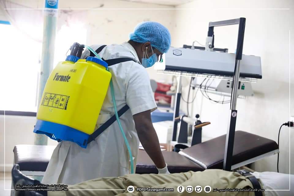 يتخذ مركز الأطراف الصناعية والتأهيل الطبيعي بتعز عددا من الإجراءات الاحترازية والوقائية تحسبا لانتشار فيروس كورونا.