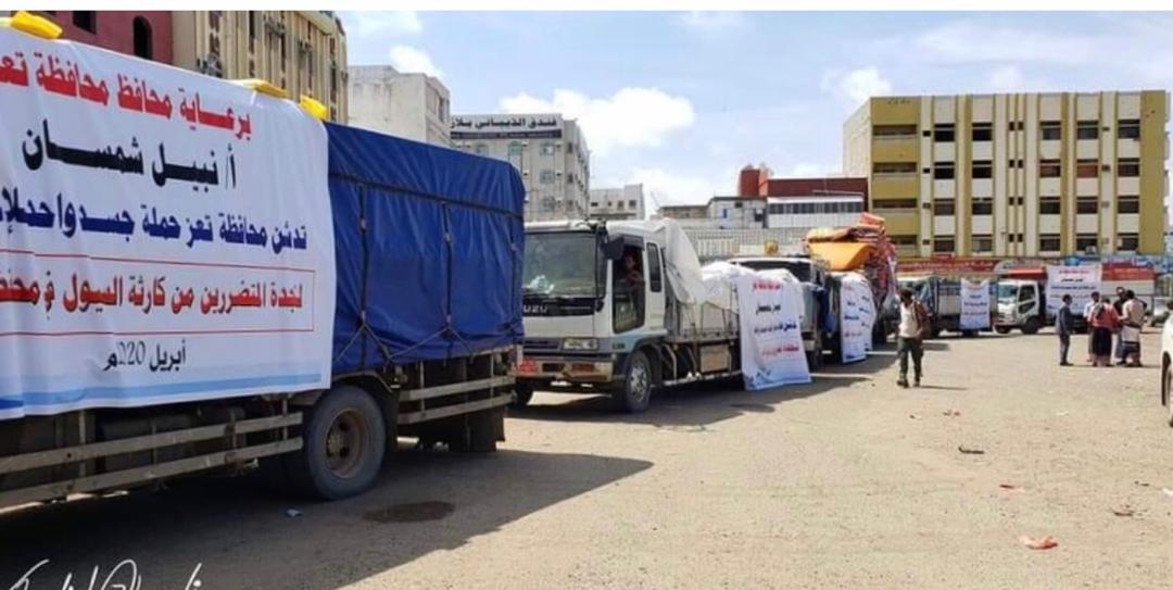 استقبلت محافظة عدن, السبت, قافلة إغاثية مقدمة من أبناء محافظة تعز, لتخفيف الأضرار التي تعرضت لها المحافظة جراء سيول الأمطار.