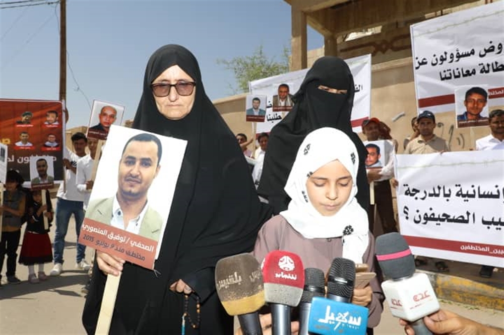 ورفض المحتجون الإهمال المتعمد من قبل الجهات المعنية لملف الصحفيين المختطفين، مطالبين سرعةِ الإفراجِ الفوري عنهم من قبل مليشيات الحوثي، دون قيد أو شرط.