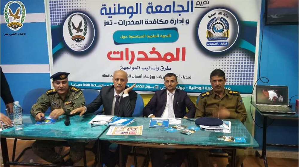 جاء ذلك في ندوة علمية مجتمعية نظمتها الجامعة الوطنية وإدارة مكافحة المخدرات بشرطة محافظة تعز، صباح اليوم الخميس، حول المخدرات لمعالجة ظاهرة انتشار المخدرات وطرق وأساليب مواجهتها.