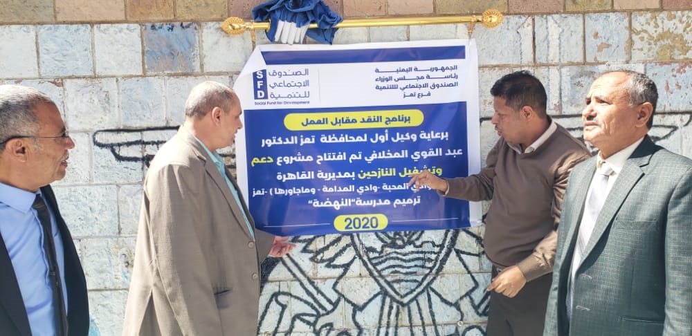 افتتح وكيل أول محافظة تعز الدكتور عبدالقوي المخلافي ومعه مدير مكتب التربية والتعليم عبدالواسع شداد، اليوم الأحد، عددا من مشاريع الصندوق الإجتماعي في الجانب التعليمى في مديرية القاهره بتكلفة تبلغ 268 ألف و950 دولار .