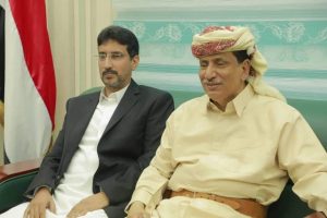 وفي مستهل اللقاء رحب المحافظ بن ياسر، بالشيخ محمد عبدالله آل عفرار، مستعرضا معه أوضاع المحافظة والدور المجتمعي المساند للسلطة في الحفاظ على النسيج الاجتماعي والأمن الذي تتمتع به المحافظة.