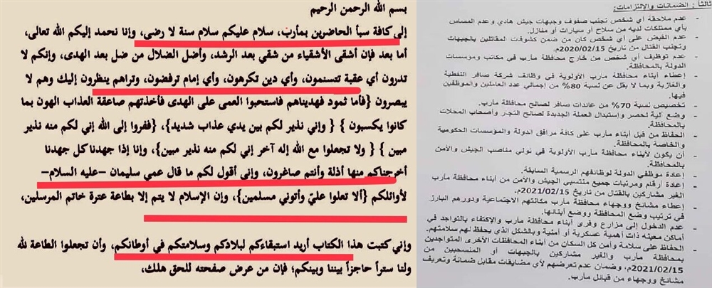 وقارن ناشطون بين رسالة مليشيا الحوثي الجديدة لسكان مأرب، ورسالة قديمة أرسلها هالكهم عبدالله ابن حمزة الذي قتل في مأرب قبل مئات السنوات.