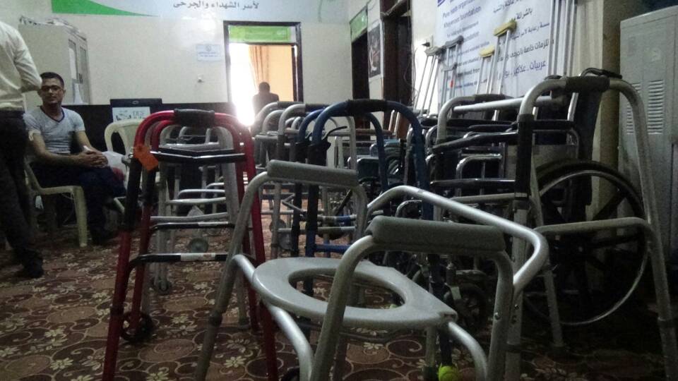 بدعم من منظمة الايادي النقية تم التنسيق بين كلا من مؤسسة خيرون للإغاثة والتنمية ومؤسسة رعاية لأسر الشهداء والجرحى لتسليم مجموعة من المعاقين الجرحى في تقديم كراسي متحركة ومشيات وعكاكيز حيث بلغ عدد المستفيدين 25 مستفيد بحيث تقدم مؤسسة خيرون الأدوات عبر قاعدة بيانات الأشد احتياجا المقدمة من مؤسسة رعاية