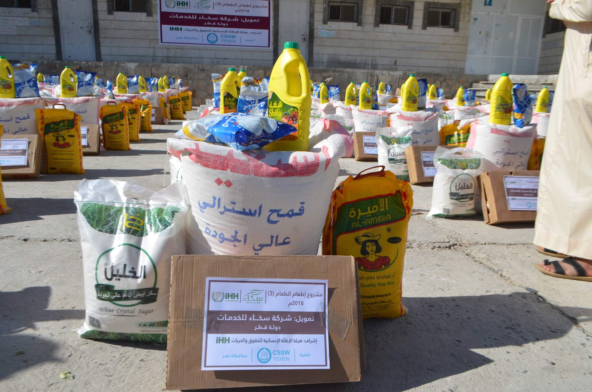 وزع فرع (CSSW) بتعز (250) سلة غذائية على النازحين من مديرتي التعزية ودمنة خدير في اطار مدينة تعز بتمويل من شركة سخاء للخدمات الانسانية واشراف هيئة الاغاثة الانسانية للحقوق والحريات واحتوت السلة الغذائية على (الدقيق والرز والسكر والحليب والبقوليات ) .. وقال امين عام فرع (CSSW) بتعز الاستاذ عبد الكريم شيبان أن المشروع استهدف النازحين الجدد من مديريتي (التعزية ودمنة خدير) بتوزيع سلة غذائية متكاملة لكل اسرة حسب عملية المسح التي نفذها العاملين الطوعيين بمراكز المديريات المستهدفة .. وناشد شيبان المنظمات الانسانية العاملة الى انقاذ حياة الاسر النازحة التي تفتقر لأبسط مقومات الحياة فأغلبها لم تتمكن من حمل امتعتها نتيجة لما تعرضوا له من بطش وتنكيل هذه الاسر وغيرها بحاجة للغذاء ومواد الايواء وكسوة الشتاء كوننا نعيش موجة صقيع وشتاء قارس وظروف معيشية صعبة .. لافتا ان تعز تشهد موجة نزوح واسعة لم تستطع الجمعيات ولا المؤسسات الخيرية استيعابها او التخفيف من اعباء هذه الاسر لدينا نزوح جديد من قرى التعزية والهاملي في موزع وكل مناطق المواجهات .. مبديا استعداد فرع (CSSW) لتقديم قاعدة بيانات عن الاسر النازحة ومواطن استقرارها لمن ارد تقديم يد العون لهذه الاسر .