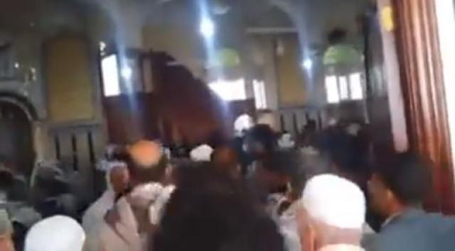 ويظهر في الفيديو المواطنون وهم يهتفون “اخرج من الجامع”، ويطالبون بخروجه، وهو يؤدي خطبتي الجمعة.