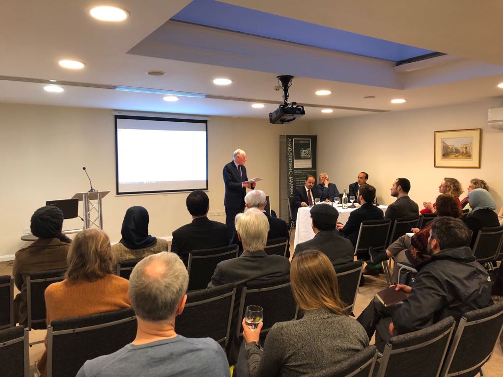 نظمت جمعية الصداقة البريطانية اليمنية بالمملكة المتحدة بالتعاون مع السفارة اليمنية لقاءً موسعاً لوزير الاعلام معمر الارياني في مقر الغرفة التجارية البريطانية العربية للحديث حول الشأن اليمني بحضور السفير الدكتور ياسين سعيد نعمان ، وعدد من الشخصيات البريطانية والدبلوماسيين والصحفيين والناشطين وباحثين من مراكز الأبحاث المهتمة باليمن.