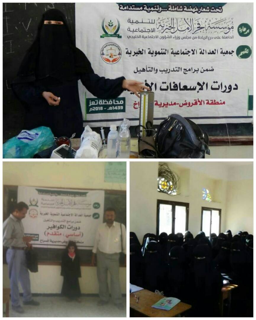دشن مكتب مؤسسة فجر الأمل الخيرية للتنمية الاجتماعية فرع الحجرية وجمعية العدالة الاجتماعية بالمسراخ يوم الإثنين 2 أبريل برنامج التنمية المجتمعية لتمكين الفتاة الريفية في مناطق الذنيب والصرم مديرية المسراخ محافظة تعز .