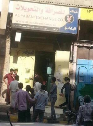 اقتحم مسلحون مجهولون، صباح اليوم الاحد، فرع شركة الياباني للصرافة في شارع التحرير الأسفل وسط مدينة تعز، ونهبوا مبالغ مالية كبيرة ولا ذوا بالفرار.