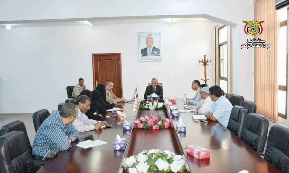 التقى محافظ تعز الدكتور ٲمين احمد محمود صباح اليوم ومعه الدكتور عبدالقوي المخلافي الوكيل الٲول للمحافظة بممثلي ورئيسة رابطة اسر الشهداء بالمحافظة وذلك لمناقشة عدد من القضايا المتعلقة برعاية اسر الشهداء والاهتمام بهم اضافة الى مناقشة عدد من القضايا والمستجدات على الساحة الوطنية التي تهم المحافظة .