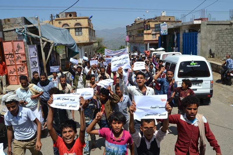 وطالب المحتجون محافظ المحافظة بسرعة استكمال تحرير المديرية من مليشيا الحوثي وتاجيل القرارات الي ما بعد التحرير لما يترتب عليها من اثار كبيرة . وقال المتظاهرين انهم يرفضوا عناصر تدوير النظام السابق او من اشتركوا في التامر علي تعز ان يكونوا حكماء لهم