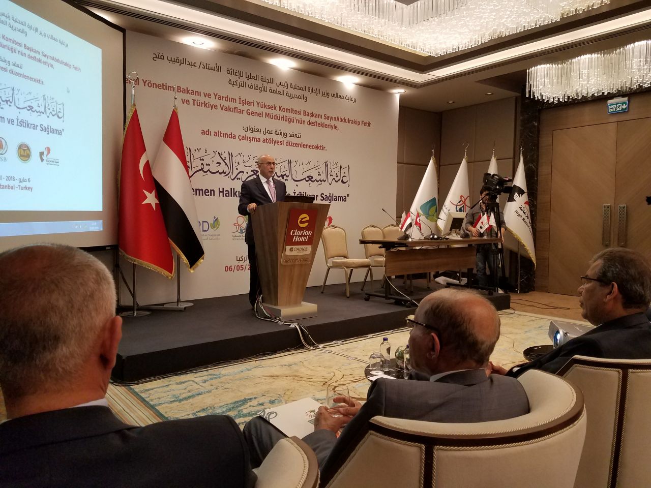وأكد وزير الادارة المحلية في كلمته التي القاها اليوم في ورشة (عمل إغاثة الشعب اليمني وتعزيز الاستقرار) التي عقدت في مدينة إسطنبول التركية، برعاية اللجنة العليا للإغاثة والحكومة التركية وعدد من المنظمات المعنية بالجانب الاغاثي ،على أهمية الانتقال إلى المرحلة الثانية من العملية الاغاثية والمرتبطة بتوفير سبل العيش وتأمين فرص العمل والبرامج العاجلة المرتبطة بحياة الناس في المدى القصير والمتوسط والمحققة لتعزيز الإستقرار في المحافظات والتي تعد من المهام العاجلة للحكومة خلال المرحلة الحالية والمقبلة.
