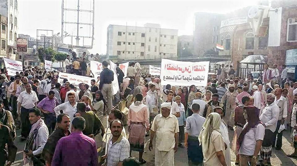 ندد العشرات من المواطنين مساء الاثنين في تعز بالعمليات الإجرامية المستمرة التي تستهدف أفرادا في الجيش الوطني ومواطنين من قبل عناصر خارجة عن القانون. وتجمع المحتجون في جولة العواضي بعد دعوة أطلقتها رابطتا أسر الشهداء والجرحى للتظاهر رفضا للأعمال الإجرامية وتنديدا بضعف تعامل السلطات في تعز مع المجرمين. وخرجت المسيرة إلى أمام مقر محافظة تعز المؤقت في شارع جمال، رافعين لافتات تطالب بموقف حازم من السلطة المحلية والأجهزة الأمنية تجاه المتورطين في دماء الجيش الوطني ومن أجرموا بحق المدينة، ولضبط الأمن وبسط نفوذ الدولة. وندد المحتجون بالجريمة البشعة التي كُشف عنها مؤخرا بعد العثور على خمس جثث لأفراد في الجيش الوطني، تعرضوا للخطف والتعذيب والذبح من قبل العصابات الإجرامية قبل أن تحاول طمس جريمتها بدفن الجثث الخمس. وطالبت رابطتا أسر الشهداء والجرحى في بيان لهما السلطة المحلية واللجنة الأمنية تحمل مسؤولياتهما في تأمين المحافظة ووضع حد للجرائم التي تستهدف سلام ومستقبل تعز، كما طالبت بتطهير المدينة من الخلايا الإجرامية. وأهابت الرابطتان بجميع أبناء تعز الوقوف صفا واحدا في معركتهم ضد الجريمة والمجرم والتعاون الإيجابي مع أجهزة الدولة لتطهير المدينة وتحقيق الأمن وإنهاء الجريمة. وأكد البيان أن تعز بشعبها وجيشها وثوارها لن تخضع للارهاب ولن تدعه ينفذ مخططاته العمياء ولن تزيدها المؤامرات إلا قوة وتصميما على الوحدة وحشد الجهود لتحرير تعز من حصار مشروع الكهنوت الانقلابي، وذلك حسب ما ذكرته شبكة تعز الإخبارية.