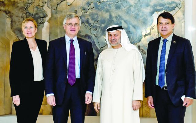 وأكّد قرقاش خلال لقائه مبعوث مملكة السويد إلى اليمن وليبيا، بيتر سيمينبي، بأبوظبي، حرص دولة الإمارات على أن تقوم الموانئ اليمنية بدورها الكامل في الجوانب الإنسانية والتجارية، دون التدخل السلبي للميليشيا الحوثية في هذا الجانب.