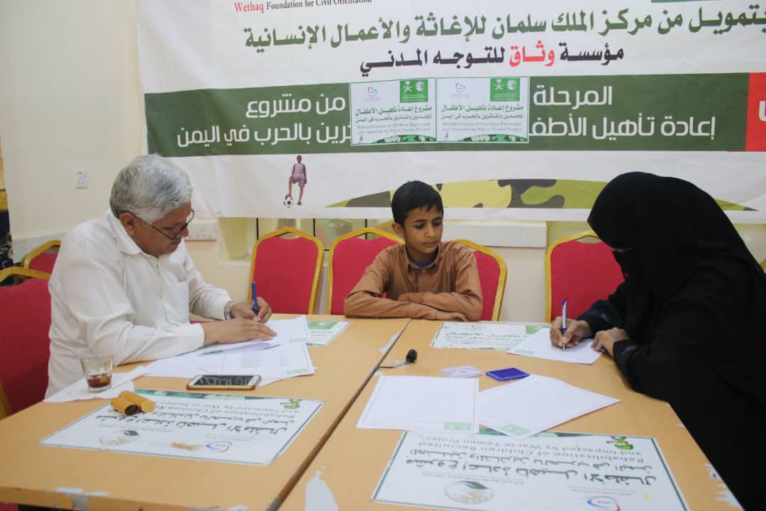 بدأت مؤسسة وثاق للتوجه المدني تنفيذ المرحلة التاسعة والعاشرة من مشروع إعادة تأهيل الأطفال المجندين والمتأثرين بالحرب في اليمن والذي يموله مركز الملك سلمان للإغاثة والأعمال الإنسانية.