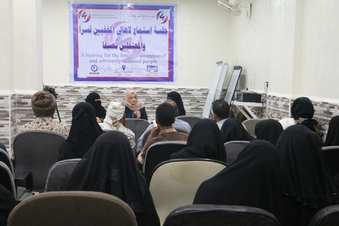 قصص ومواقف بالغة القسوة ترويها زوجات وأمهات المخفيين قسرا والمختطفين في عدن، وتسردها ممزوجة بالدموع على مسمع عدد من الشخصيات الحقوقية في جلسة استماع لأهالي المختطفين والمخفيين قسرا نظمتها صباح اليوم في عدن مؤسسة دفاع للحقوق والحريات.
