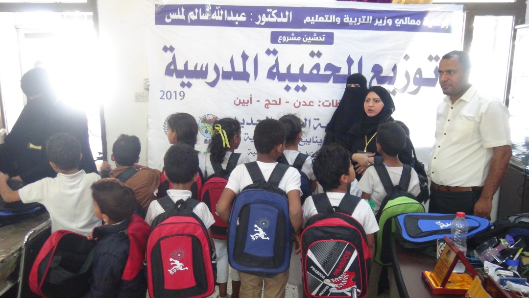 دشن اليوم توزيع مشروع الحقيبة المدرسية لثلات محافظات (عدن – لحج -أبين)،