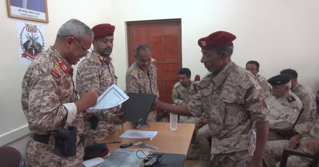 اللواء الرابع مشاة جبلي يستعرض الانجازات ويدشن مشروع الانضباط بالبصمة في معسكراته
