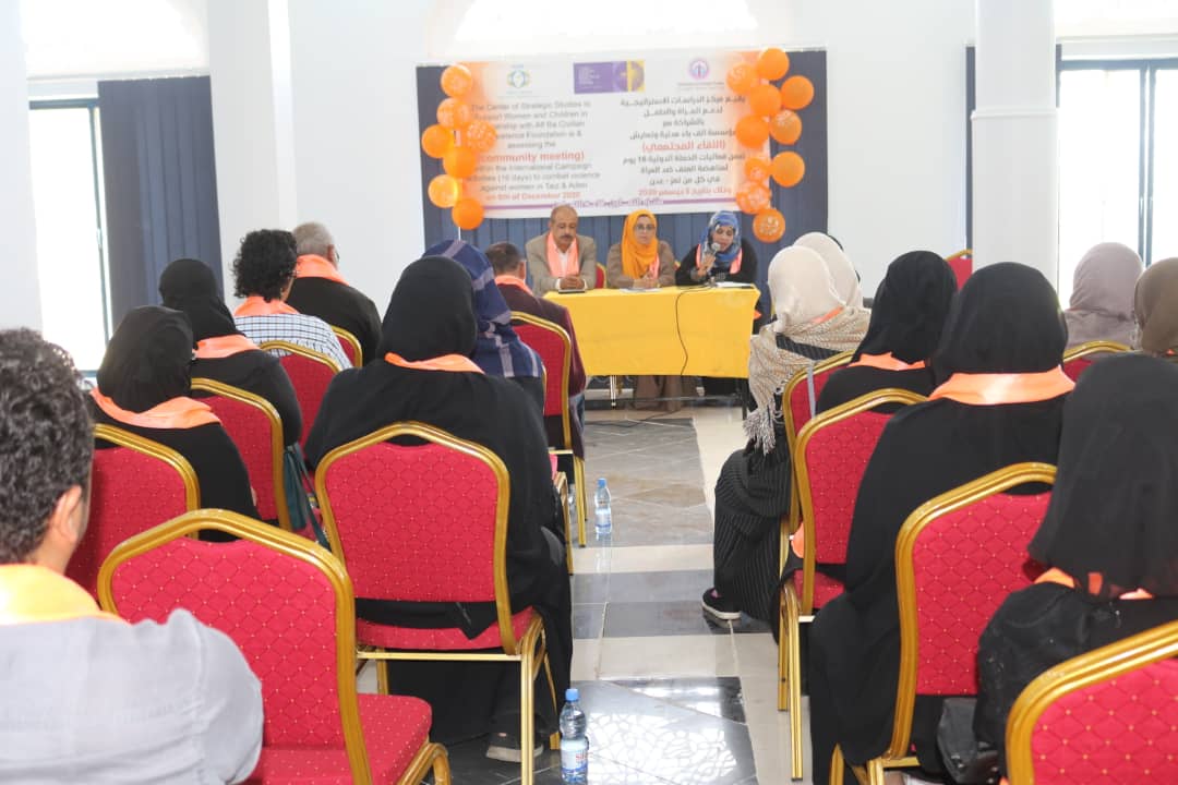 أقام مركز الدراسات الاستراتيجي لدعم المرأة والطفل بالشراكة مع مؤسسة ألف باء مدنية وتعايش، صباح اليوم السبت، لقاءً مجتمعيًا في مدينة تعز، ضمن فعاليات الحملة الدولية 16 يوم لمناهضة العنف ضد المرأة القرار ( 1325)،