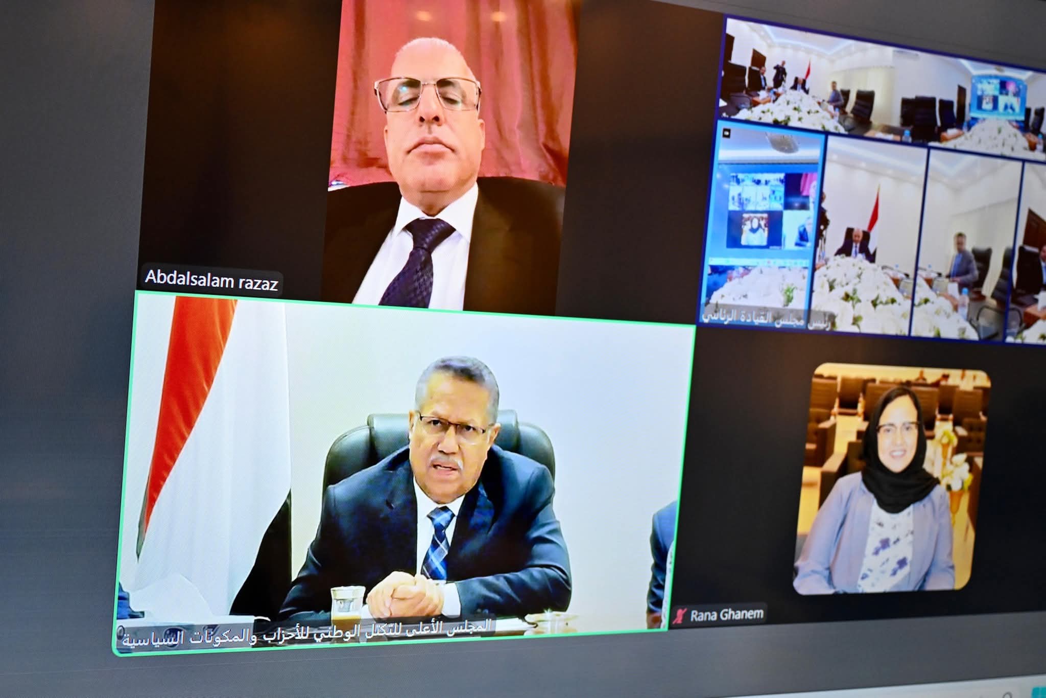 واستمع رئيس مجلس القيادة الرئاسي في اللقاء من رئيس واعضاء التكتل الوطني للأحزاب والمكونات السياسية الى مداخلات حول رؤية التكتل لتعزيز وحدة الصف، والاصطفاف الوطني بين كافة المكونات، وملاحظاتهم بشأن اداء السلطة التنفيذية، والمقترحات المطلوبة لتحسين التنسيق بين القوى الوطنية، والشراكة الاوسع في صنع القرار.